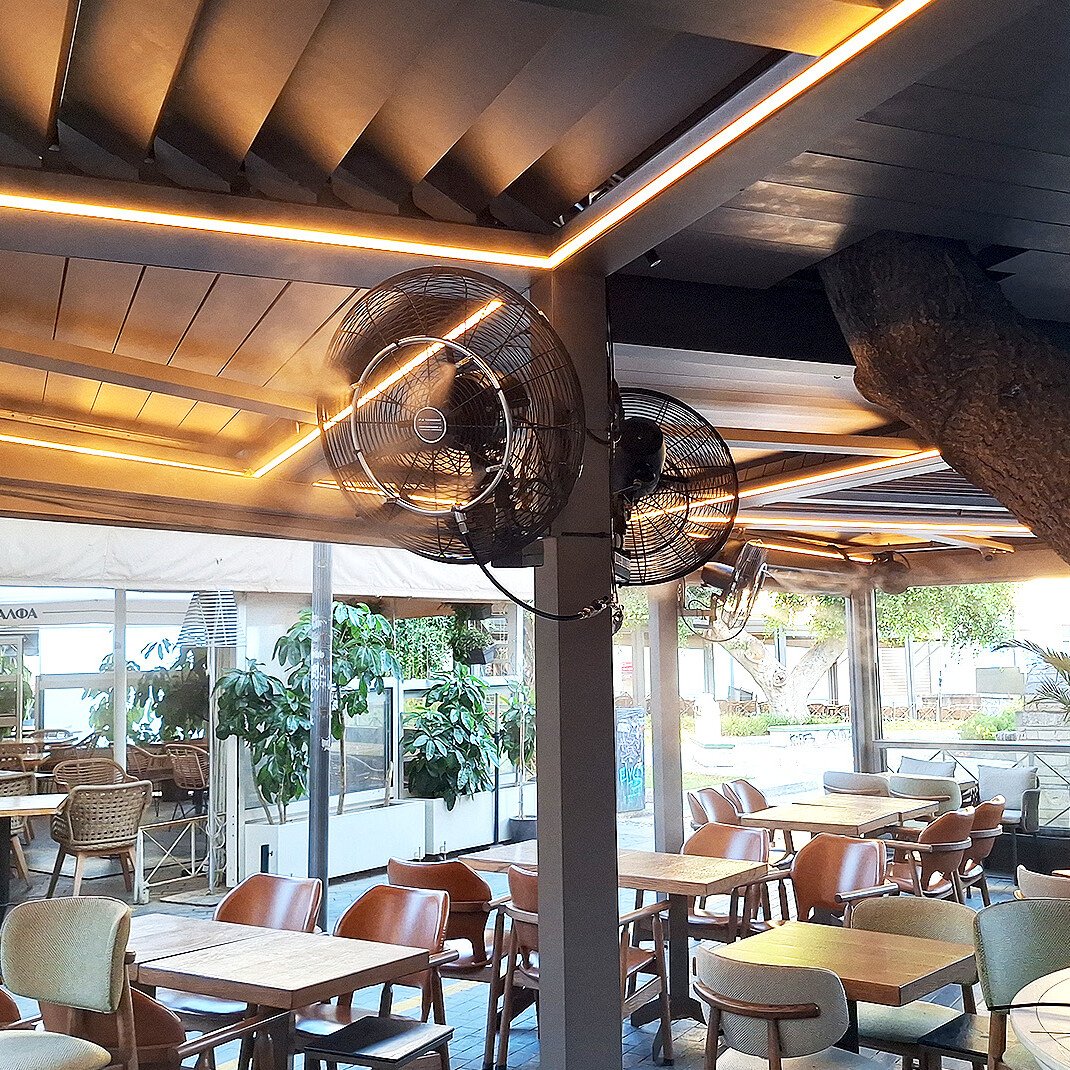 Η εμπειρία του πελάτη ξεκινά από την άνεση που αισθάνεται στο χώρο σας και αυτό εξαρτάται σε μεγάλο βαθμό από το μικροκλίμα. Συστήματα υδρονέφωσης για καφετέριες, ταβέρνες και beach bars προσφέρουν άνεση ακόμα και τις πιο ζεστές μέρες, χωρίς σταγόνες και υγρασία.