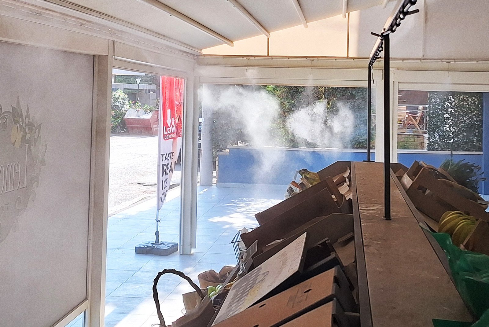 Είναι σημαντικό να τονιστεί ότι, πέρα από τα οφέλη για τα ίδια τα προϊόντα, η εκνέφωση δημιουργεί μια ευχάριστη αίσθηση δροσιάς σε ολόκληρο τον χώρο που τα περιβάλλει αν αναλογιστούμε πως ρίχνει σημαντικά τη θερμοκρασία! Αυτό συμβάλλει στη δημιουργία πιο άνετου περιβάλλοντος για τον πελάτη αλλά και σε βελτιωμένες συνθήκες εργασίας για το προσωπικό, ιδιαίτερα κατά τη διάρκεια της καλοκαιρινής περιόδου.