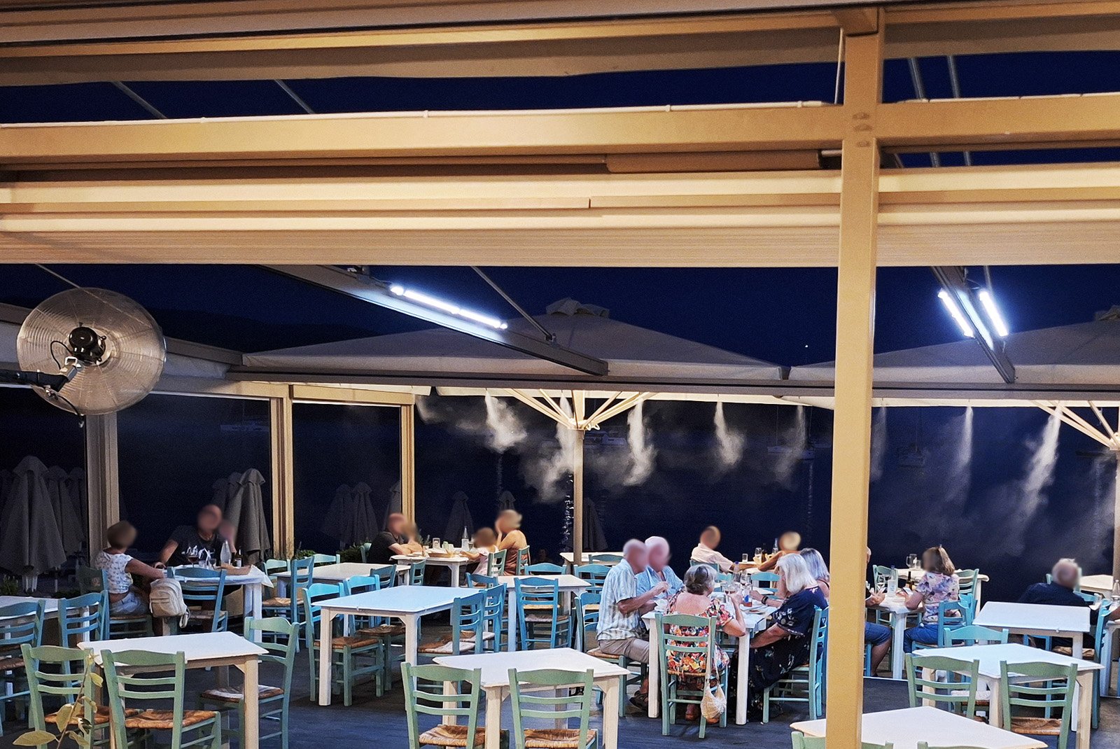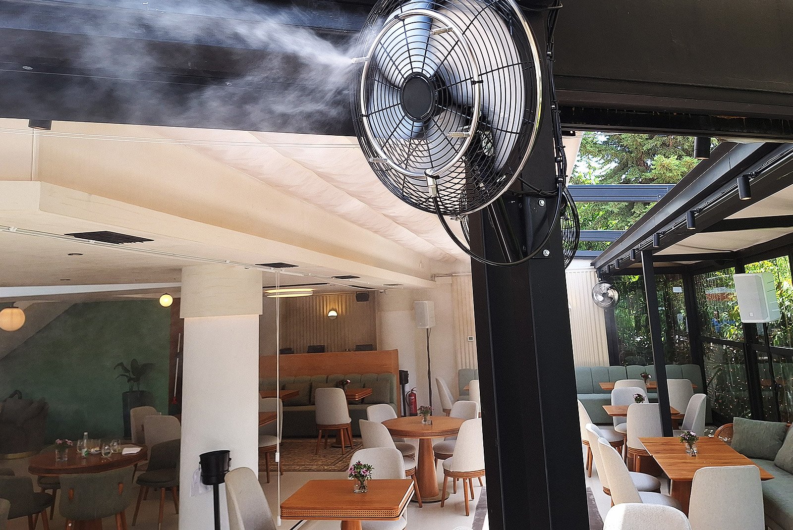 - Εξασφαλίζει ευχάριστο και δροσερό περιβάλλον για τους πελάτες σε εξωτερικά καθίσματα, ακόμη και τις πιο θερμές ημέρες.